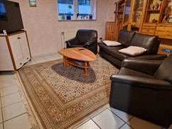 Abend im Wohnzimmer unserer Ferienwohnung bei einer Flasche